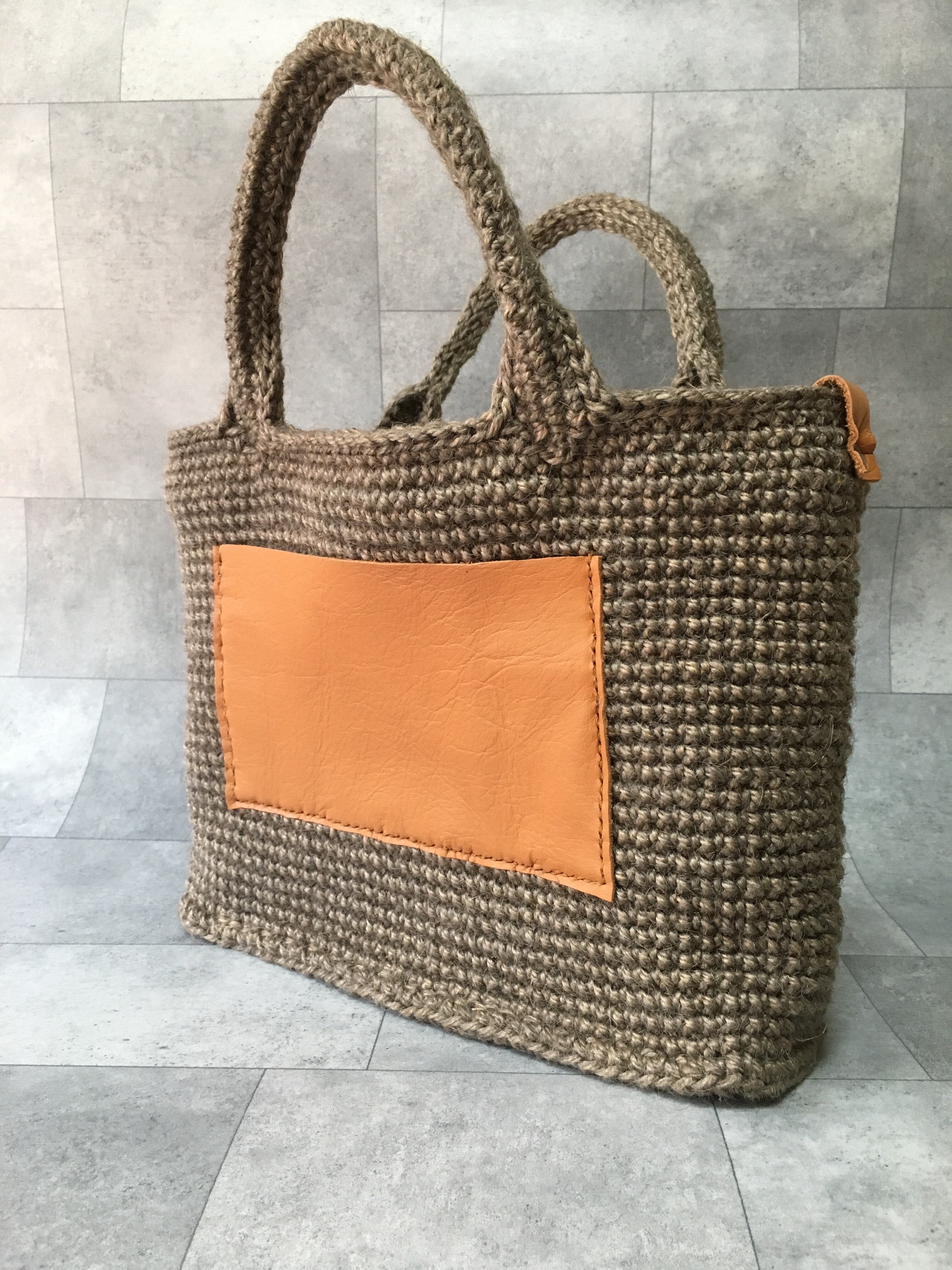 秋冬もお持ちいただけるデザインの麻ひもバッグです。
